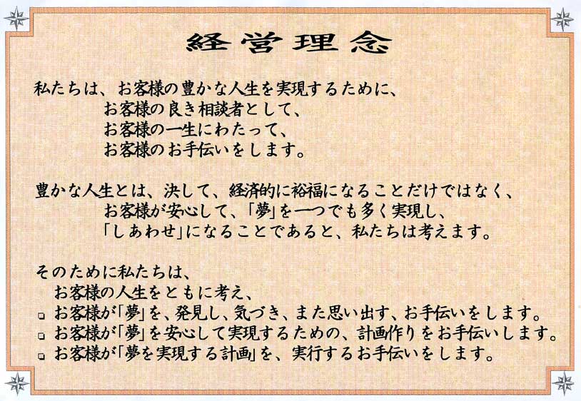 ・お客様が「夢」を、安心して実現するための、計画作りをお手伝いします。